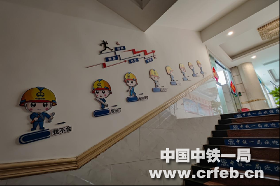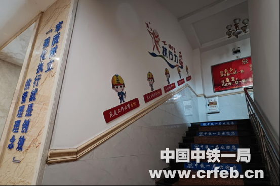 在通往項目領(lǐng)導(dǎo)班子辦公室的三樓樓梯左側(cè)墻,下半部分張貼著“理解職工、情系職工、關(guān)愛職工、保護職工”的標語,這是讓項目部的領(lǐng)導(dǎo)們,猶如家庭里家長一般時刻裝著家庭中的成員,讓他們真切感受到來自“家長”的溫暖和擔當;上半部分左側(cè)墻張貼著“青春不停步 永遠跟黨走”“團員入團宣誓”“義務(wù)權(quán)利”“優(yōu)秀團員、信息公示、學習園地”相關(guān)內(nèi)容,彰顯項目團組織要引領(lǐng)團員青年積極向上、展示良好風貌。