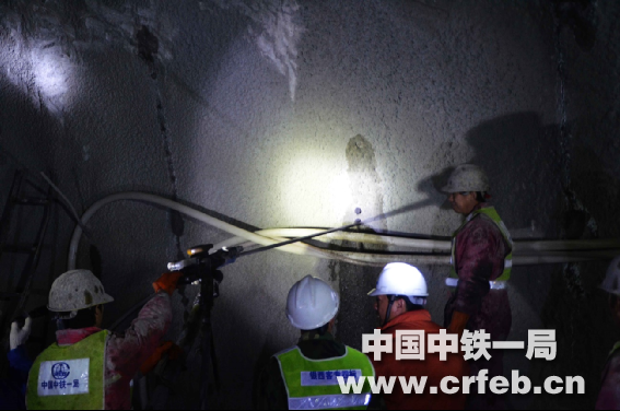 檢查組一行首先來(lái)到賈塬隧道2#斜井銀川方向正洞,重點(diǎn)查看了二襯砼逐窗分層澆筑、防排水系統(tǒng)的情況及仰拱弧形模板使用情況,詳細(xì)詢問(wèn)現(xiàn)場(chǎng)技術(shù)人員錨桿施作、帶模注漿工藝等;現(xiàn)場(chǎng)對(duì)初支進(jìn)行鉆孔驗(yàn)證,結(jié)果顯示厚度、密實(shí)度均符合設(shè)計(jì)要求;對(duì)隧道拱部系統(tǒng)錨桿安設(shè)、帶模注漿工藝、二襯砼灌注防脫空進(jìn)行現(xiàn)場(chǎng)指導(dǎo),并對(duì)隧道防水板搭接采取三縫焊接工藝給予了肯定。最后針對(duì)檢查中存在的問(wèn)題提出了整改要求。
