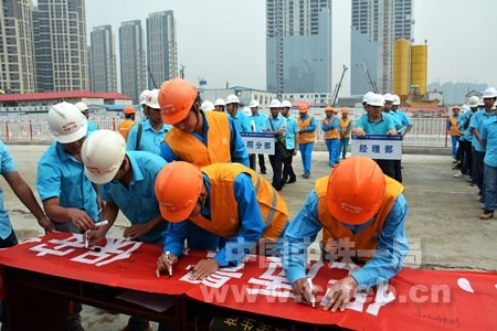 廣佛環項目安全總監張榮慶、隧道分部經理彭銳介紹了東平2號隧道施工安全教育培訓情況;技術主管覃景貴介紹了隧道主體結構施工概況;全體與會人員進行“安全質量誓言”宣誓;孟磊代表全體群眾安全監督員宣讀了群安員倡議書;彭洋代表全體青安崗崗員宣讀了青安崗倡議書;隨后全體與會人員在“反三違、查隱患、促質量、保安全”橫幅上簽名。
