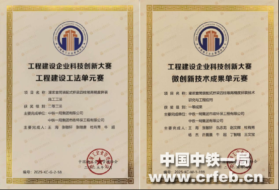 在工法大賽賽道,《灌漿套筒裝配式橋梁四柱墩高精度拼裝施工工法》被評為二等工法。
