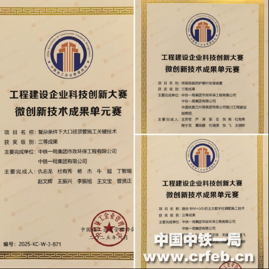 近日,中國施工企業管理協會公布了第五屆工程建設企業科技創新大賽結果并頒發了成果獎勵證書,由中鐵一局市政環保公司主持完成的多項技術成果獲獎。