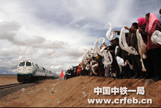 當(dāng)?shù)匕傩諝g慶青藏鐵路通車