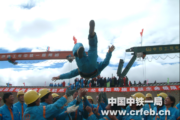 經(jīng)過建設(shè)者艱苦卓絕的努力,2005年8月24日10時,在海拔5072米的唐古拉車站,兩臺鋪軌機(jī)伴隨著陣陣的鞭炮聲同時鋪下了最后兩節(jié)軌排。那一刻,在場的所有的建設(shè)者歡呼雀躍,相擁而泣。高聲呼喊:我們勝利啦!