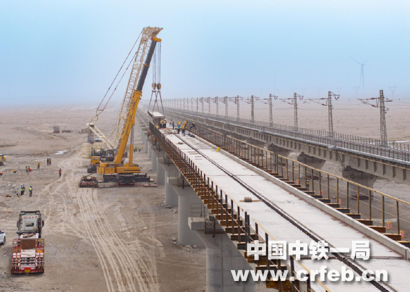 就是在這樣的環境中,中國中鐵一局的建設者們承擔起了全線297.73公里軌道鋪設、376孔簡支T梁的預制與架設任務。他們以科技為刃,以堅守為盾,在茫茫戈壁中書寫下又一頁中國鐵路建設的奇跡。