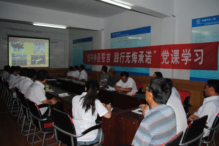 自4月份公司黨委開(kāi)展“黨支部書(shū)記講黨課”競(jìng)賽評(píng)比活動(dòng)以來(lái),項(xiàng)目黨支部高度重視,根據(jù)黨委組織部提供的輔導(dǎo)教材,結(jié)合項(xiàng)目實(shí)際情況開(kāi)展了《信守神圣誓言,踐行無(wú)悔承諾》的黨課培訓(xùn)。此次授課采用圖文并茂、趣味性濃厚的幻燈片方式,支部書(shū)記聲情并茂的講解,大大提升了黨課教育的吸引力和感染力,營(yíng)造出了良好的學(xué)習(xí)氛圍。
