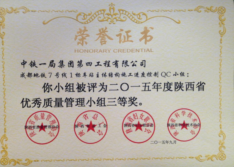 成都地鐵7號(hào)線1標(biāo)主體結(jié)構(gòu)施工進(jìn)度控制QC被評(píng)2015年度陜西省QC三...