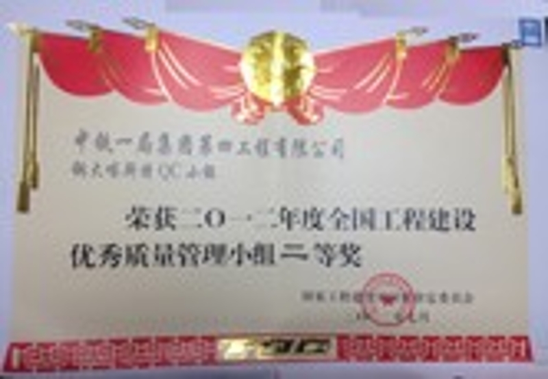 銅大喀斯特QC小組2012年度全國(guó)工程建設(shè)優(yōu)秀質(zhì)量管理小組二等獎(jiǎng)
