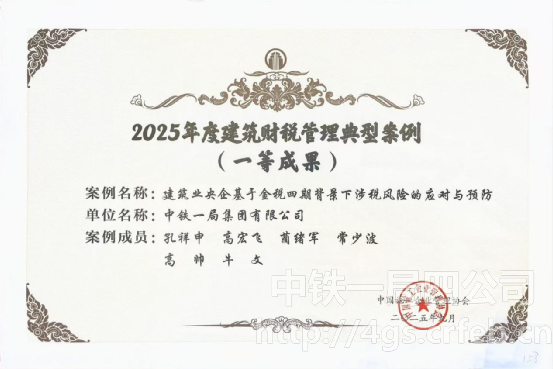 近年來,中鐵一局四公司堅持以推動“四實五型”機關建設為目標,在管理實踐中不斷積累經(jīng)驗、優(yōu)化方法,為企業(yè)稅務管理等核心工作提供了堅實支撐。此次獲獎不僅是對公司稅務管理工作的高度認可,更是企業(yè)始終踐行“依法納稅、合規(guī)經(jīng)營、風險可控”稅務管理理念,全面落實“四型、四化、四提升”工作要求的有力印證。未來,公司機關將抓細抓實“四實五型”機關建設、做優(yōu)做強精細化、標準化管理、加大加強創(chuàng)新創(chuàng)效力度,不斷夯實稅務管理根基、提升服務保障能力,為企業(yè)高質量發(fā)展注入更強動力,為建筑行業(yè)財稅管理創(chuàng)新貢獻更多“一局方案”。