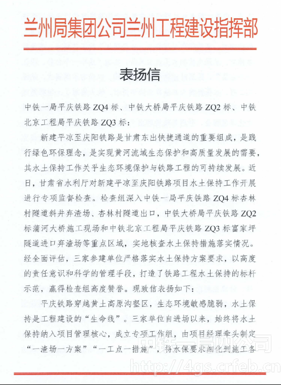 表揚是激勵,更是責任。項目負責人表示,項目團隊將以此次通報表揚為契機,持續(xù)發(fā)揚“鐵軍”作風,以更嚴標準、更實舉措推進后續(xù)施工,全力將平慶鐵路項目打造為“精品工程、綠色工程、放心工程”,為推動甘肅地區(qū)鐵路建設(shè)高質(zhì)量發(fā)展貢獻力量。