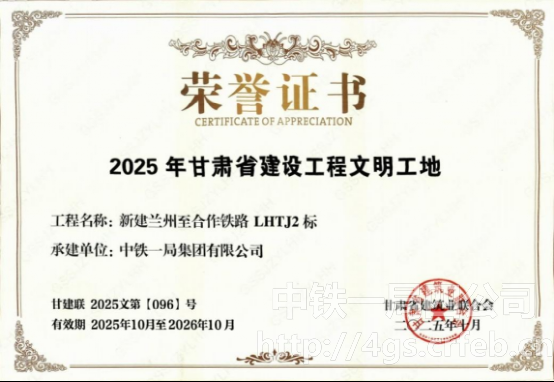 蘭合鐵路項(xiàng)目榮獲甘肅省2025年“省級(jí)文明工地”