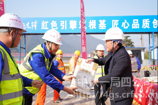 活動中,李秀君向奮戰在宜涪高鐵施工生產一線的全體建設者致以崇高敬意和親切慰問。他指出,2025年是宜涪高鐵項目建設的開局之年,全體參建人員大力弘揚“開路先鋒”精神,凝心聚力、攻堅克難,取得了全線第二個通過標準化驗收、組織全線首次現場觀摩的優異成績,隧道正洞單洞及累計進尺均位居全線榜首。他強調,此次送溫暖活動不僅是一次暖心慰問,更是一次再集結、再動員、再沖鋒的動員大會。全體人員要以此次活動為契機,進一步統一思想認識、提升工作作風、強化擔當作為,堅持安全文明施工,對標一流管理,將勞動競賽與年度目標有機結合、將整改落實與標準化提升深度融合、將崗位職責與品牌建設緊密聯動,全力以赴打響項目品牌,為企業高質量發展和精品工程建設貢獻智慧與力量?;顒蝇F場,各分部經理分別作表態發言,承諾將堅決落實集團公司部署要求,嚴守安全質量紅線,科學組織施工,確保年度各項目標任務圓滿完成。隨后,與會領導向一線職工和勞務工代表發放了防寒慰問品,讓大家在寒冬中深切感受到組織的關懷與溫暖。
