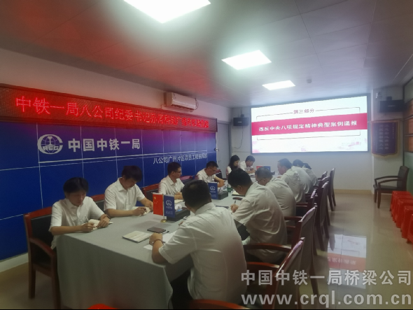 6月13日上午,中鐵一局八公司黨委副書記、紀委書記孫同科到廣州片區項目工程指揮部講授深入貫徹中央八項規定精神學習教育專題黨課,指揮部12名黨員及入黨積極分子參加學習。