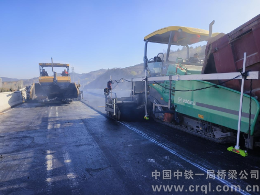 中鐵一局沁水項(xiàng)目杏河高架橋?yàn)r青鋪筑完成