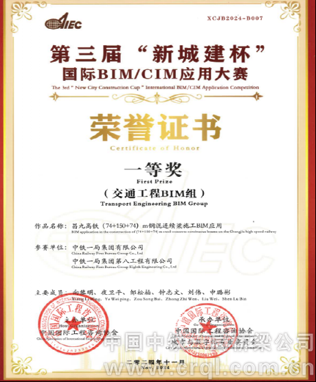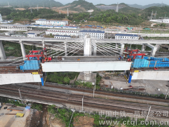 施工中19次跨越鐵路、高速與水庫,每一次跨越都是對技術與安全管控的嚴峻考驗。跨杭瑞高速特大橋施工中,創新采用國內首創的“自驅動輪軌式小車大縱坡馱運縱移+豎向千斤頂吊掛系統整體下放”工法,以16臺小車組成“運輸矩陣”完成過孔作業,借BIM技術實現鋼箱梁誤差毫米級控制,工效較傳統工法提升10倍,相關BIM應用成果榮獲“新城建杯”一等獎、“秦漢杯”二類成果獎,為同類工程提供寶貴經驗。