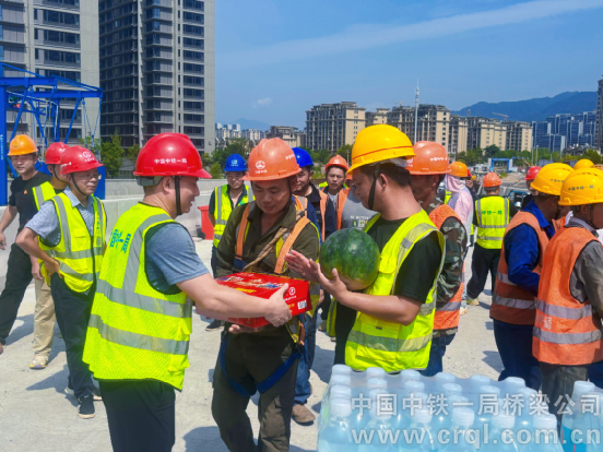 活動現(xiàn)場,史維康代表公司向奮戰(zhàn)在一線的人員表達(dá)了感謝與敬意。他強調(diào),當(dāng)前正值全國高溫、南方汛情多發(fā)的關(guān)鍵時期,項目部要始終堅持“人民至上、生命至上”的原則,強化安全質(zhì)量預(yù)防監(jiān)督、過程管控,提高應(yīng)急處置能力,確保全體參建員工身體健康。隨后,史維康與項目領(lǐng)導(dǎo)班子等人為一線建設(shè)者們送上了礦泉水、涼茶、西瓜等防暑降溫物資。