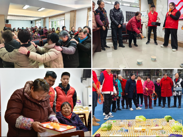 活動當天,志愿者們來到位于重慶市渝北區(qū)的人和街道汪家橋社區(qū),在與社區(qū)工作人員詳細了解老人們的日常需求與生活狀況后,精心策劃了一系列適合老年人興趣的互動活動。在“健康拍手操”環(huán)節(jié),青年員工與老人們手拉手圍成圓圈,在歡快的音樂中舒展筋骨;在“夾瓶蓋挑戰(zhàn)賽”中,老人們專注地用筷子夾起瓶蓋,志愿者在一旁加油鼓勁,場面溫馨熱烈。此外,“筷子傳杯”“蔬菜水果套圈”等游戲更是點燃了老人們的熱情,社區(qū)廣場上洋溢著歡聲笑語。