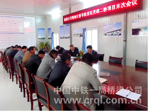 在首次會議上,檢查組首先就橋梁公司首次精細(xì)化管理檢查及集團(tuán)公司精細(xì)化管理時提出的整改意見落實情況進(jìn)行了詳細(xì)詢問,并通過施工現(xiàn)場、內(nèi)業(yè)資料、上線運(yùn) 行情況等三方面進(jìn)行了詳細(xì)檢查,充分肯定了項目的精細(xì)化管理工作,并認(rèn)為蕪湖長江公路二橋項目施工工藝先進(jìn),技術(shù)含量高,體現(xiàn)了橋梁公司橋梁建設(shè)的亮點。