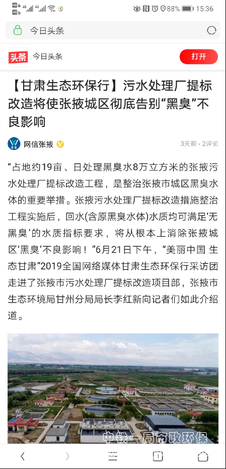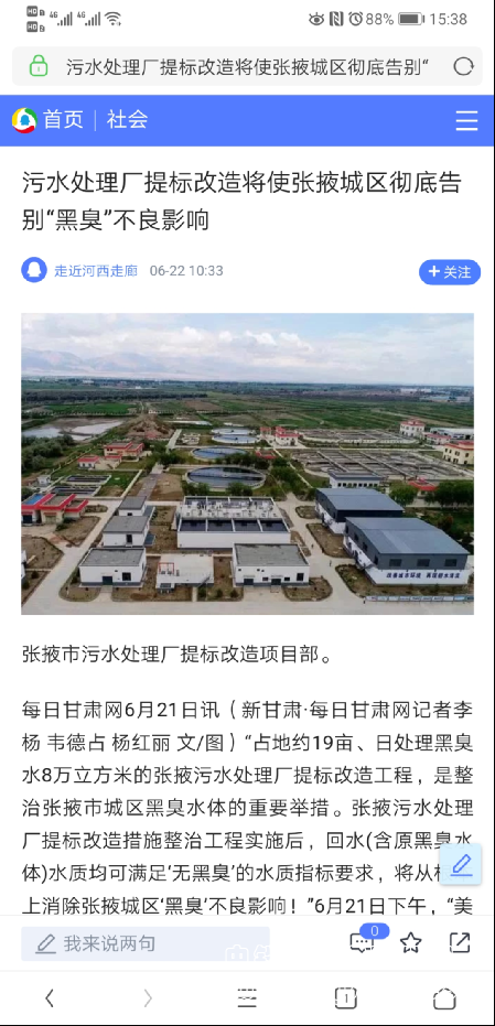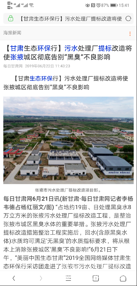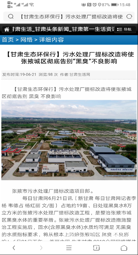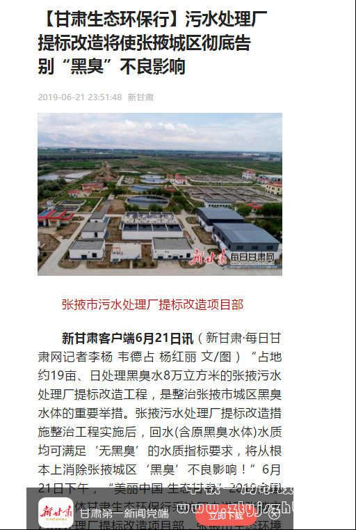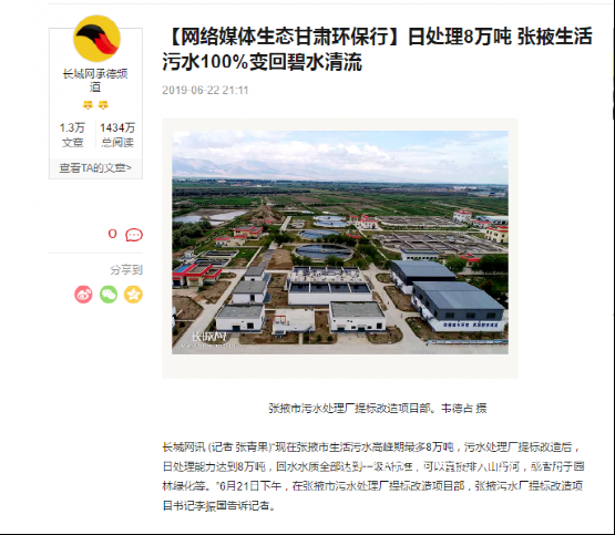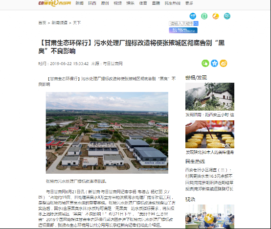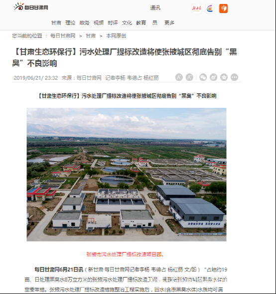 各大媒體報道:張掖污水處理廠提標改造項目