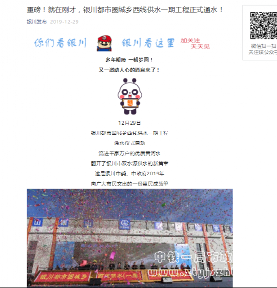 中國(guó)政府網(wǎng)報(bào)道:銀川都市圈城鄉(xiāng)西線供水工程項(xiàng)目通水