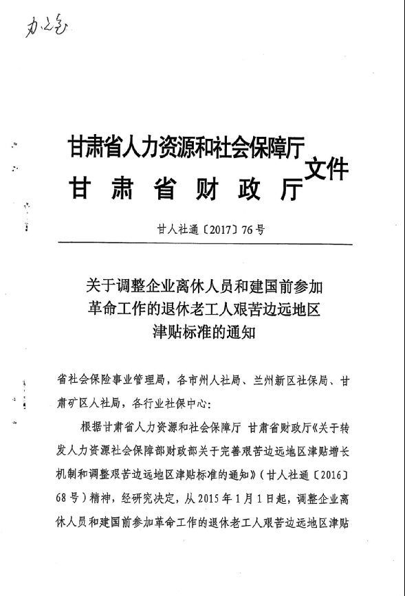關于調整企業離休人員和建國前參加革命工作的退休老工人艱苦邊遠地區津貼標準的通知