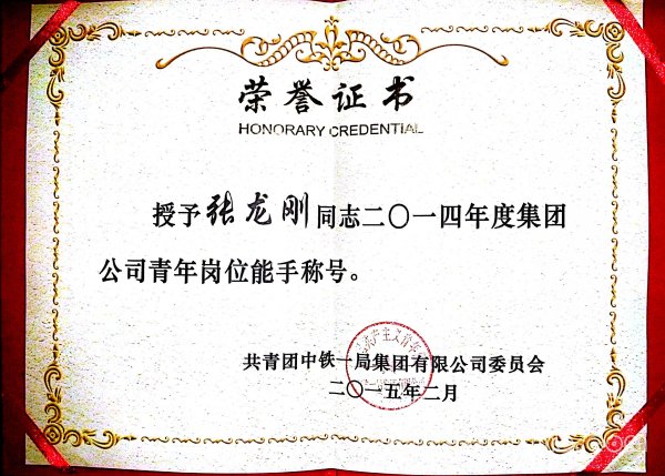 張龍剛榮獲2014年度集團(tuán)公司青年崗位能手稱(chēng)號(hào)