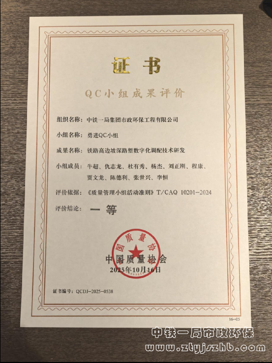 市政環保公司兩項QC成果獲中國質量協會成果評價