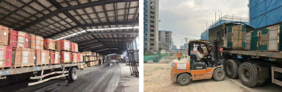 大批瓷磚運抵項目