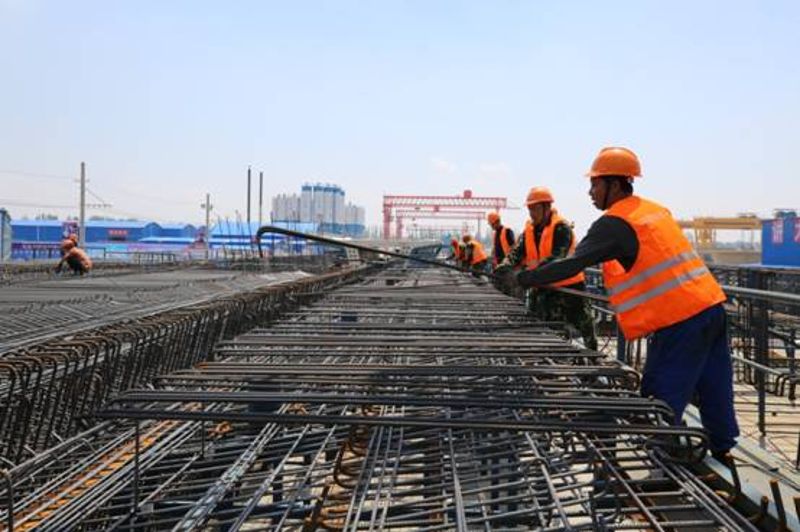 從2016年9月10日進場以來,7天完成400余畝征地任務,11天完成試驗室儀器標定校驗工作,45天成功預制首孔箱梁,2017年1月22日,梁場以優異的成績一次性通過國家生產許可認證審查。3月底,梁場最高日產達到5孔,現在,梁場正以每天預制6孔梁的速度向前推進。