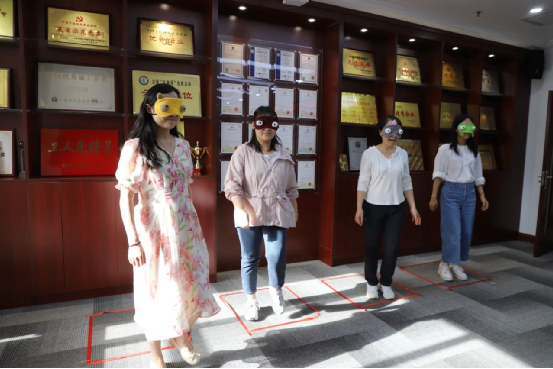 在 “原地踏步走” 游戲中,4名職工站成一排,隨著音樂的節(jié)奏在規(guī)定區(qū)域內(nèi)踏步。當(dāng)音樂戛然而止,工作人員“最近距離者” 收獲一份小獎(jiǎng)品。五輪游戲下來,現(xiàn)場(chǎng)笑聲不斷,大家在比拼中放松了身心,也增進(jìn)了彼此間的互動(dòng)。
