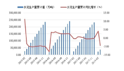2018年1季度水泥產量大幅下降,1-3月份,水泥產量為3.76億噸,同比去年同期下降了14.7%。