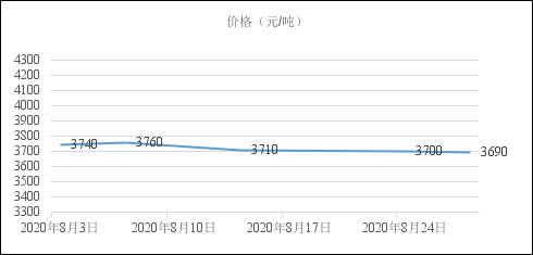 2020年8月份國內建筑鋼價以震蕩為主,下圖為西安地區(qū)螺紋鋼HRB400EФ20mm價格走勢。