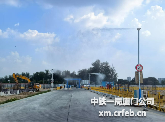 在筑牢地面防線的同時(shí),項(xiàng)目部顯著提升揚(yáng)塵治理的科技含量與精準(zhǔn)度,率先大規(guī)模啟用智能化高桿霧炮系統(tǒng)。相較于傳統(tǒng)噴淋系統(tǒng),高干旋轉(zhuǎn)霧炮系統(tǒng)具有覆蓋面積更廣、降塵效果更好等優(yōu)勢(shì),其形成的立體水霧屏障,全天候精準(zhǔn)捕捉、抑制高空逸散粉塵,有效解決了傳統(tǒng)設(shè)備難以企及的高空揚(yáng)塵難題。與此同時(shí),揚(yáng)塵監(jiān)測系統(tǒng)與智能化高桿旋轉(zhuǎn)霧炮機(jī)在工地內(nèi)部織密機(jī)動(dòng)防線,這些設(shè)備具備遠(yuǎn)程操控、智能聯(lián)動(dòng)功能,操作人員可依據(jù)粉塵實(shí)時(shí)在線監(jiān)測數(shù)據(jù)和作業(yè)面動(dòng)態(tài),靈活調(diào)整噴射角度與霧量,對(duì)土方開挖、樁基施工、物料裝卸等瞬時(shí)高濃度揚(yáng)塵點(diǎn)實(shí)施“點(diǎn)穴式”精準(zhǔn)打擊,大幅提升抑塵響應(yīng)速度與瞬時(shí)污染控制能力。
